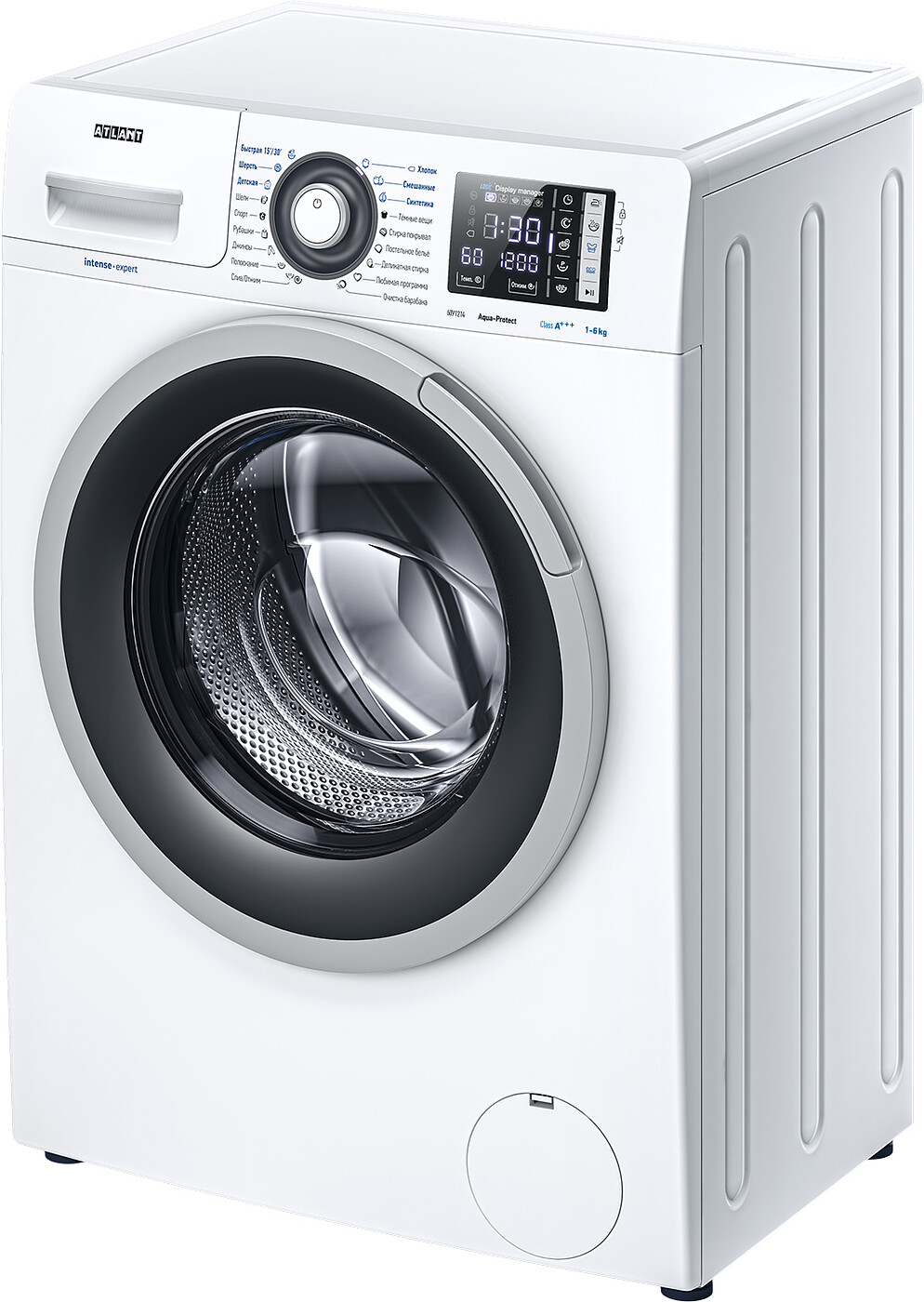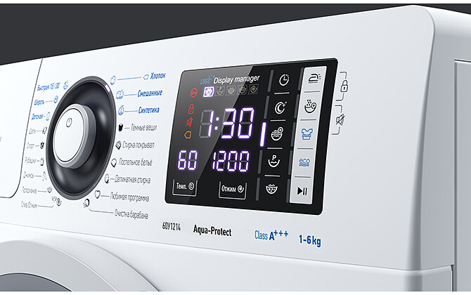 | Дополнительные функции | контроль дисбаланса, контроль за уровнем пены, защита от детей, регулировка скорости отжима, регулировка температуры стирки, система защиты от протечек AQUA-PROTECT |